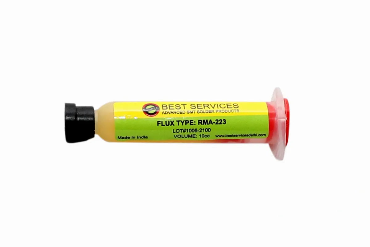 It is the mixture of high-quality alloyed powder and resinic pasty flux, it can avoid the pale yellow residue, so you are easy to clean the board.