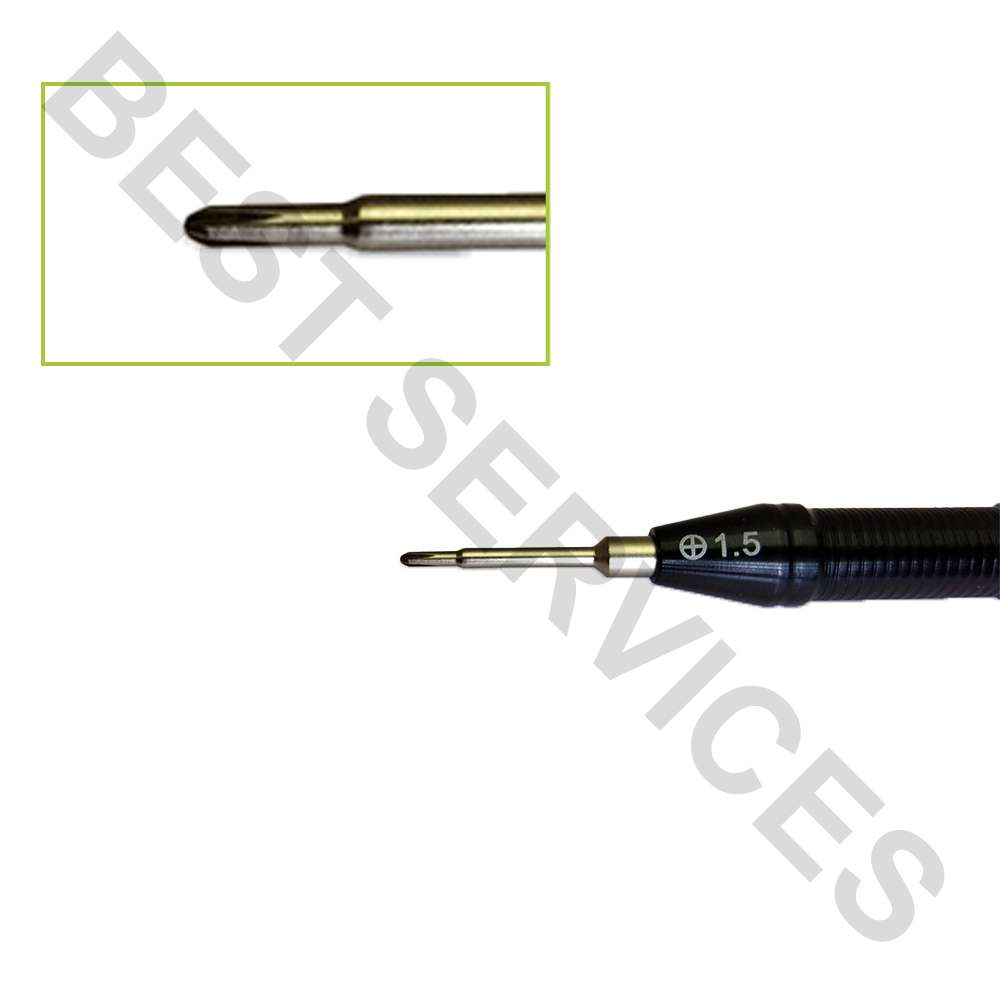 P2 0.8mm, PH000 1.2mm, Y0.6, T2,Convex Cross 2.5mm, but the screwhead was fixed that can not be replaced.