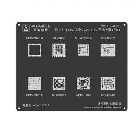 MEGA-IDEA Black Stencils QUALCOM CPU – is born for rebelling tin balls, bring you unique using experience, making every tin ball round and full. Professional builder of black rebelling stencils.  great ordinarily. economic but functional. With multiple polish and test, all series of rebelling tools for apple and android phone chips finally come out.