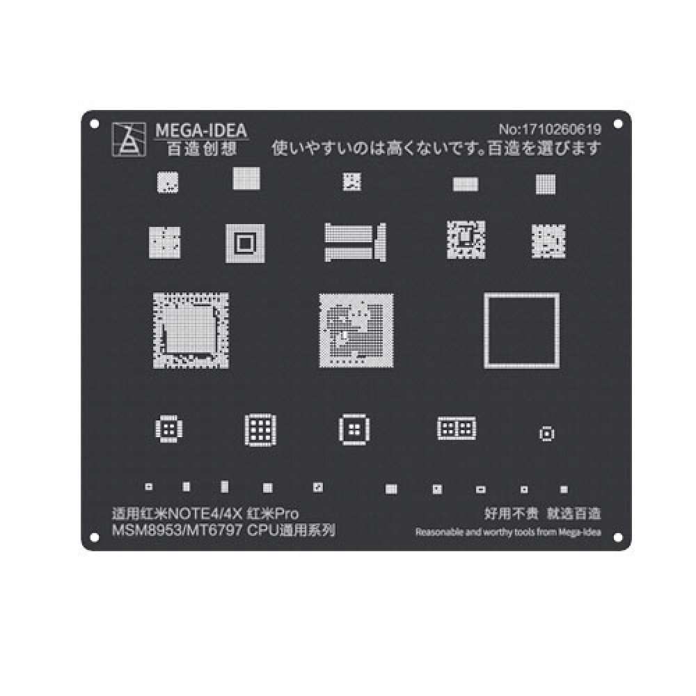 MEGA-IDEA Black Stencils MSM8953 MT6797 CPU For Redmi Note 4 | 4X | Redmi Pro – is born for rebelling tin balls, bring you unique using experience, making every tin ball round and full. Professional builder of black rebelling stencils. great ordinarily. economic but functional. With multiple polish and test, all series of rebelling tools for apple and android phone chips finally come out.