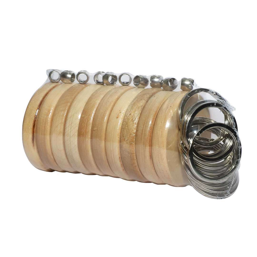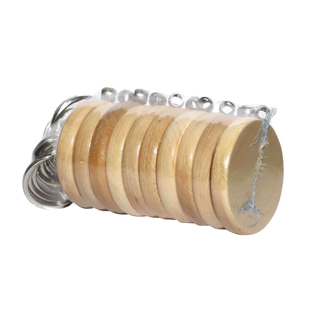 WOODEN KEYRING ROUND (PACK OF 10)